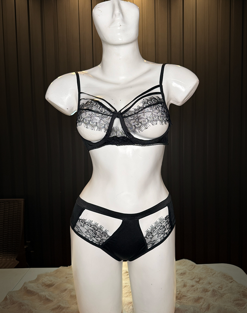 Set de 2 piezas color negro, con detalles de encaje y varillas.