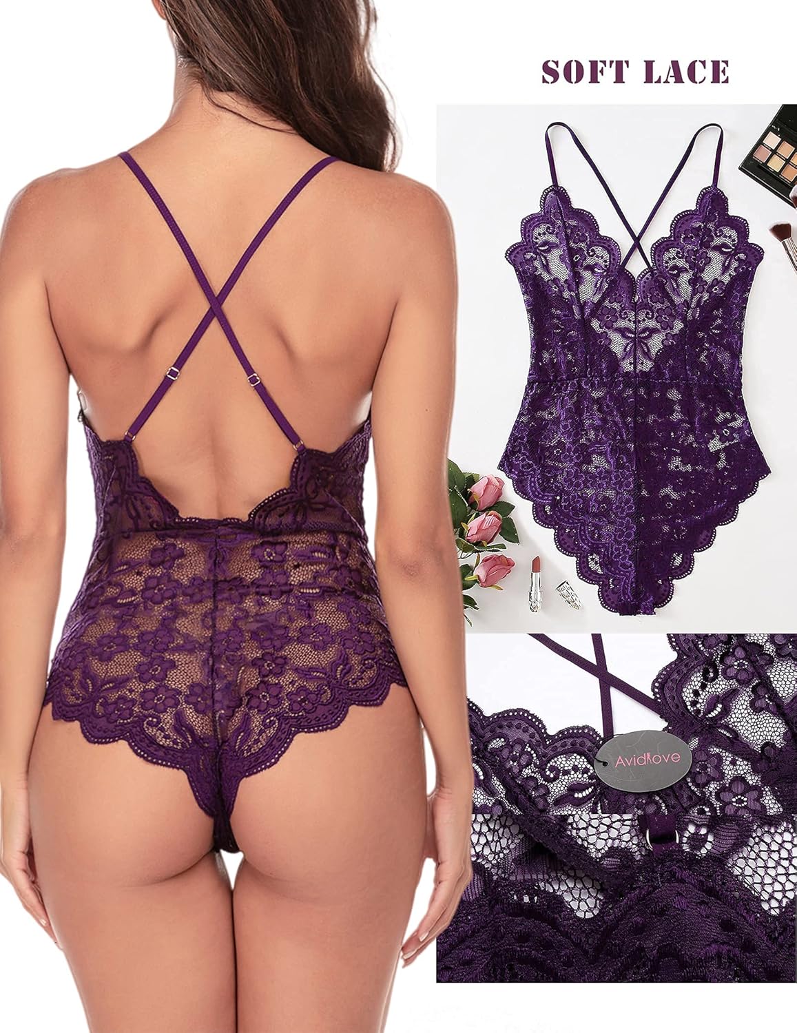 Elegancia y sensualidad se fusionan en este espectacular body de encaje floral en tono ciruela profundo. Su diseño semitransparente realza la silueta con delicadeza, mientras el escote en V con acabado ondulado aporta un toque romántico y sofisticado. Los tirantes finos y el ajuste al cuerpo brindan comodidad y soporte ligero.