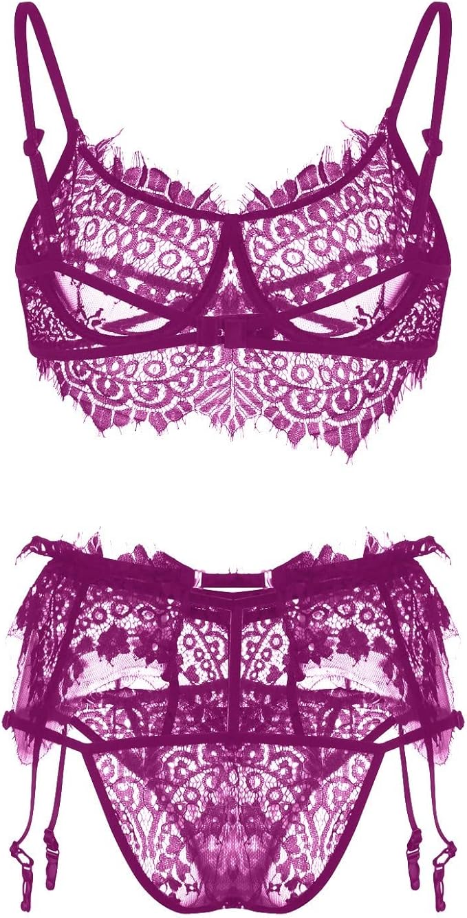 + Free ShippingSet de 3 piezas color Lila, lencería de encaje sexy para mujer.